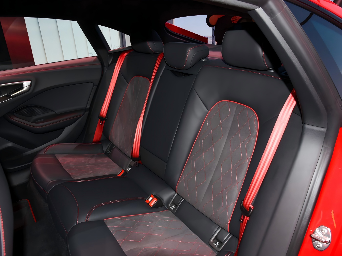 Iš šono automobilyje yra be rėmelių durys ir klasikinis greitas dizainas. Išplėstinė ratų bazė aiškiai matoma iš viršutinio vaizdo, o stogo linija švelniai nusileidžia žemyn nuo C statramsčio, kad būtų užtikrinta pakankamai galinio keleivio vietos. Galiniame gale yra viso pločio dizainas su antrosios kartos OLED galiniais žibintais, kurie siūlo įvairius pritaikomus apšvietimo parašus, kad patenkintų jaunų vartotojų poreikius. Kalbant apie matmenis, naujojo automobilio ilgis yra 4 903 mm, 1 883 mm pločio ir 1 427 mm aukščio, kurio bazė yra 2 922 mm. Tai rodo 74 mm ilgio ir 22 mm padidėjimą ratų bazėje, palyginti su užsienio „Audi A5“.
