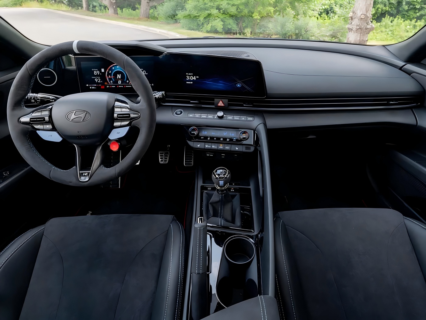 Kalbant apie interjerą, bendras naujojo automobilio išdėstymas nedaug skiriasi nuo „Elantra N“, tačiau jame yra „N našumo“ „Alcantara“ vairas su 12 valandos padėties žymekliu. Tuo tarpu priekinėje eilėje yra mėlynos saugos diržų, durų slenksčiuose yra „n Performance Metal Sill“ sargybiniai, o automobilyje taip pat yra N našumo grindų kilimėliai, taip pat daugybė „Alcantara“ interjero rinkinių. Pavyzdžiui, rankinis stovėjimo stabdžių svirtis, pavarų perjungimo svirtis ir porankių dėžutės porankiai yra suvynioti į „Alcantara“. Galiausiai ant durų rankenos žibintų yra „TCR versijos“ logotipas, kuriame pilna emocinio patrauklumo.